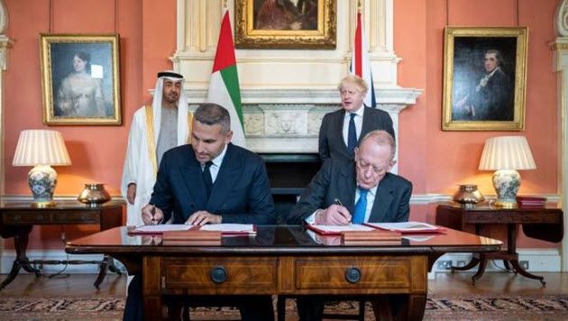 وشهد الشيخ محمد بن زايد آل نهيان ولي عهد أبوظبي نائب القائد الأعلى للقوات المسلحة وبوريس جونسون رئيس وزراء بريطانيا مراسم توقيع اتفاقية شراكة بين شركة مبادلة للاستثمار و وزارة التجارة الدولية في المملكة المتحدة للاستثمار السيادي بين دولة الإمارات والمملكة المتحدة بقيمة 10 مليارات جنيه إسترليني.