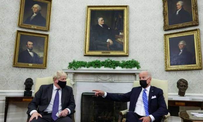 وامتنع الرئيس الأمريكي جو بايدن يوم الثلاثاء الماضي، خلال استقباله رئيس الوزراء البريطاني بوريس جونسون في البيت الأبيض، عن الإدلاء بأي التزام بشأن ابرام اتفاقية تجارة حرة مع بريطانيا، مشيراً فقط إلى أن «النقاشات مستمرة».