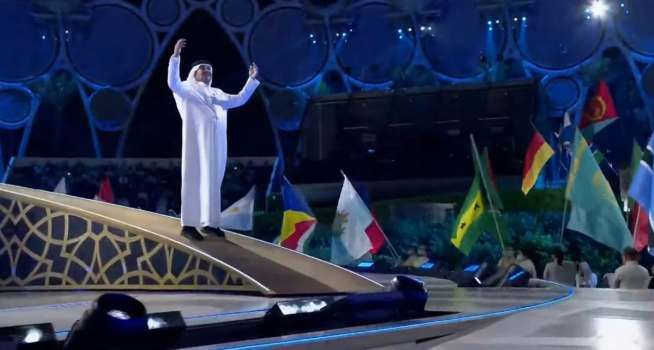 وبعد ذلك أعلن الشيخ حمدان بن محمد بن راشد آل مكتوم ولي عهد دبي رسمياً انطلاق فعاليات معرض ”إكسبو 2020“ في دبي.