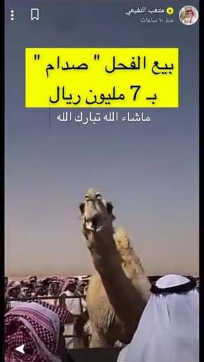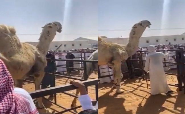 وأظهر مقطع فيديو تم تداوله في وسائل إعلام محلية ومواقع التواصل الاجتماعي، عشرات الملاك وعشاق الإبل يتجمعون حول الجمل، بينما يعلن متحدث بالمزاد بواسطة مكبر صوت المبالغ التي يدفعها الراغبون باقتناء ذلك البعير.