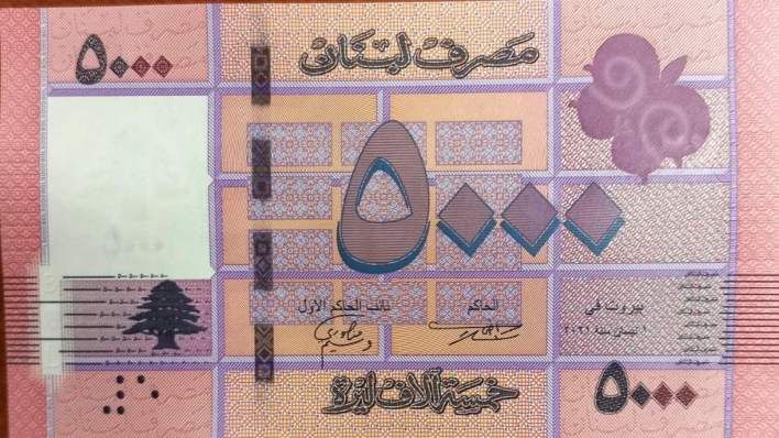 وأحاط مصرف لبنان الجمهور علما بأنه سيضع في التداول اعتبارا من تاريخ 26/4/2022 ورقة نقدية جديدة من فئة الـ 5000/ ل.ل. (خمسة آلاف ليرة) موقعة من حاكم مصرف لبنان رياض سلامه والنائب الأول لحاكم مصرف لبنان الدكتور وسيم منصوري.