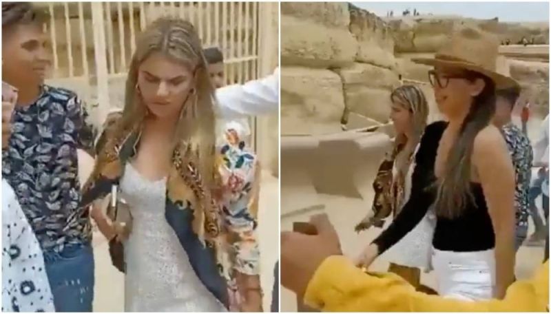 وأظهر الفيديو الذي تم تداوله بشكل واسع عبر مواقع التواصل الاجتماعي ازدحام المكان بالشباب والأطفال، ومضايقة سائحتين أجنبيتين والتحرش بهما.