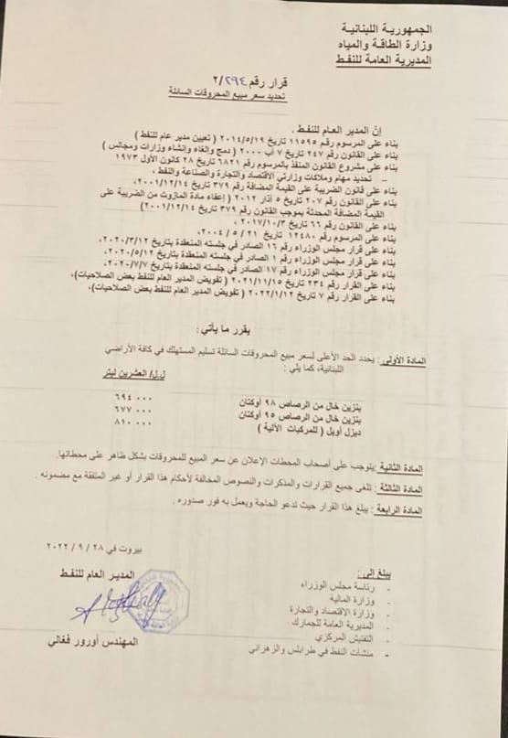 ارتفعت أسعار المحروقات كافة، اليوم الأربعاء، وصدر الجدول وفقاً لما يلي: بنزين 95: 677000 (+27000) بنزين 98: 694000 (+27000) ديزل: 810000 (+34000)