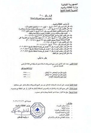 أصدرت وزارة الطاقة، اليوم الأربعاء، جدولاً جديداً لأسعار المحروقات.