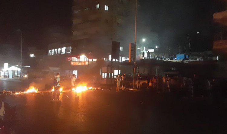 قطع عدد من اهالي مدينة صيدا القديمة السير على الاوتوستراد البحري بالاطارات المشتعلة وحاويات النفايات، احتجاجاً على انقطاع التيار الكهربائي ومولدات الاشتراكات التي نفدت كميات المازوت لدى اصحابها. ويعمل الجيش على اعادة فتح الطريق.