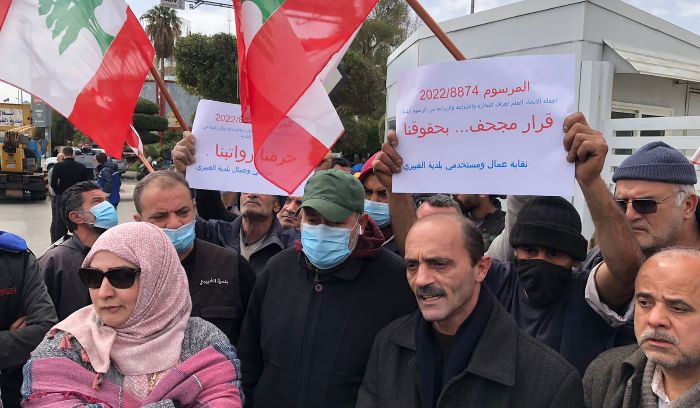 نفذ عمال وموظفو واجراء بلدية الغبيري اعتصاما أمام مبنى عدنان القصار (اتحاد الغرف العربية) تحت عنوان “حقوق عمال واجراء البلدية واستمرارية الخدمة العامة”، واحتجاجا على المرسوم 8874 الذي اتخذته الحكومة بإعفاء القصار من الرسوم البلدية البالغة 2,3 مليار ليرة لبنانية.