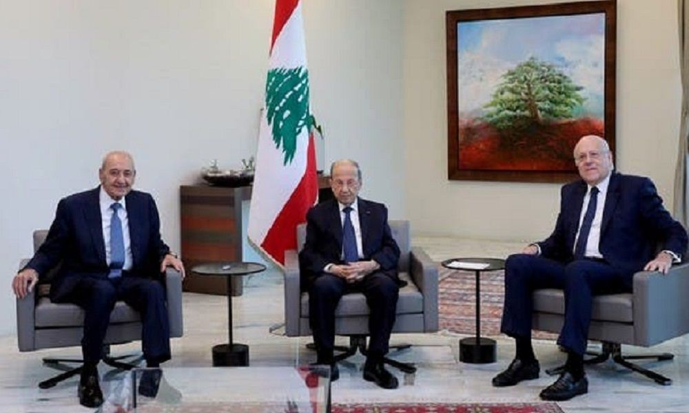 فقد قرّر رئيس الجمهورية العماد ميشال عون ورئيسا مجلس النواب نبيه بري والحكومة نجيب ميقاتي في خلال الاجتماع الرئاسي الذي عقد في قصر بعبدا ظهر امس وخصص للبحث في اقتراح الوسيط الأميركي آموس هوكشتاين حول ترسيم الحدود البحرية الجنوبية، دعوةَ الولايات المتحدة الى الاستمرار في جهودها لاستكمال المفاوضات لترسيم الحدود البحرية، وفقاً لاتفاق الاطار بما يحفظ مصلحة لبنان العليا والاستقرار في المنطقة. وشددوا على ان هذا الملف وطني بامتياز ويجب أن يبقى بعيدا عن التجاذبات والمزايدات التي لا طائل منها.