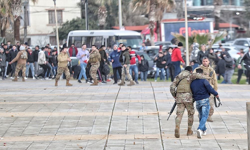 تراشق جمهوري المنتخب السوري واللبناني بالحجارة أمام ملعب صيدا ما أدى الى توقف مباراة لبنان وسوريا في تصفيات كأس العالم. وتدخل الجيش اللبناني ليفصل بين الطرفين.
