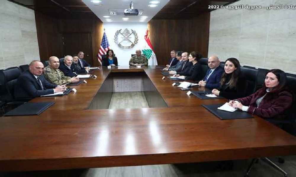 استقبل قائد الجيش العماد جوزاف عون في مكتبه في اليرزة وفداً من American task force on Lebanon برئاسة السفير إد غابريال وحضور سفيرة الولايات المتحدة لدى لبنان دوروثي شيا.