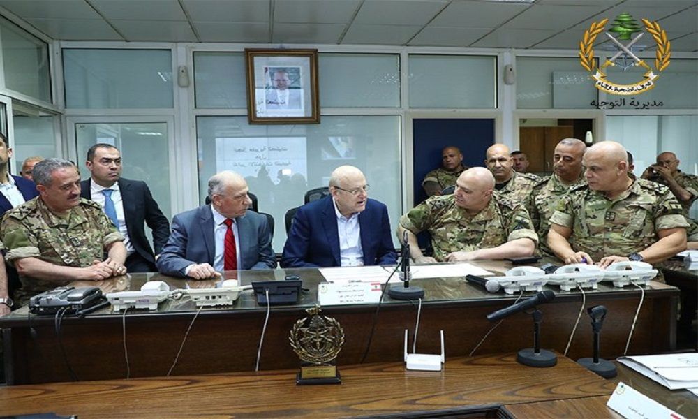 تفقد رئيس الحكومة نجيب ميقاتي غرفة العمليات في قيادة الجيش بحضور وزير الدفاع موريس سليم وقائد الجيش العماد جوزاف عون.