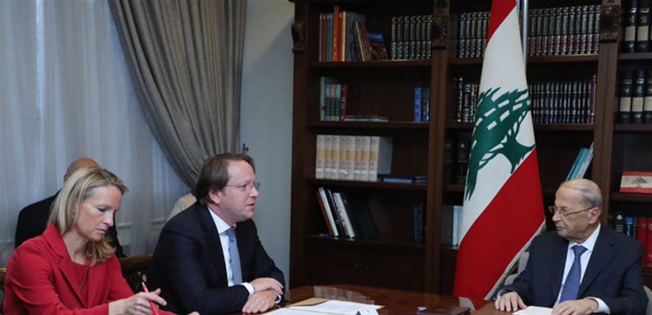 استقبل رئيس الجمهورية ميشال عون المفوض الأوروبي لشؤون الجوار والتوسع أوليفر فاريلي في قصر بعبدا.