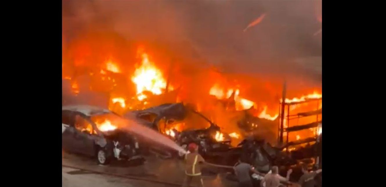اندلع حريق كبير، مساء اليوم السبت، داخل مساحة خاصّة بقطع السيارات في منطقة شوكين - النبطية.