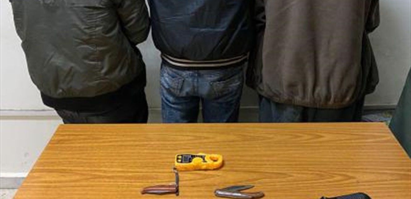 بتاريخ 24-11-2022 وبعد عملية رصد ومراقبة دقيقة، أوقفت إحدى دوريات الشعبة المذكورين في محلة الشوان على متن سيارة الدودج (تم ضبطها). وبتفتيشهم والسيارة، تم ضبط أدوات تستعمل في عمليات السرقة وهي عبارة عن مقص حديدي كبير، جهاز إلكتروني لقياس قوة الكهرباء، قطاعة و/2/سكين ست طقات، و/191/ قطعة من أسلاك هاتف نحاسية طول القطعة حوالي المتر.