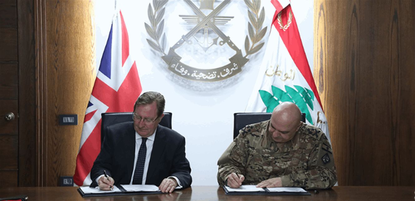 أعلن السفير البريطاني في لبنان هايمش كاول، في بيان عن السفارة، عن "التزام بقيمة 13 مليون جنيه إسترليني لدعم صمود الجيش اللبناني من العام 2022 حتى 2025 وذلك في مذكرة تفاهم وقعت مع قائد الجيش اللبناني العماد جوزاف عون".