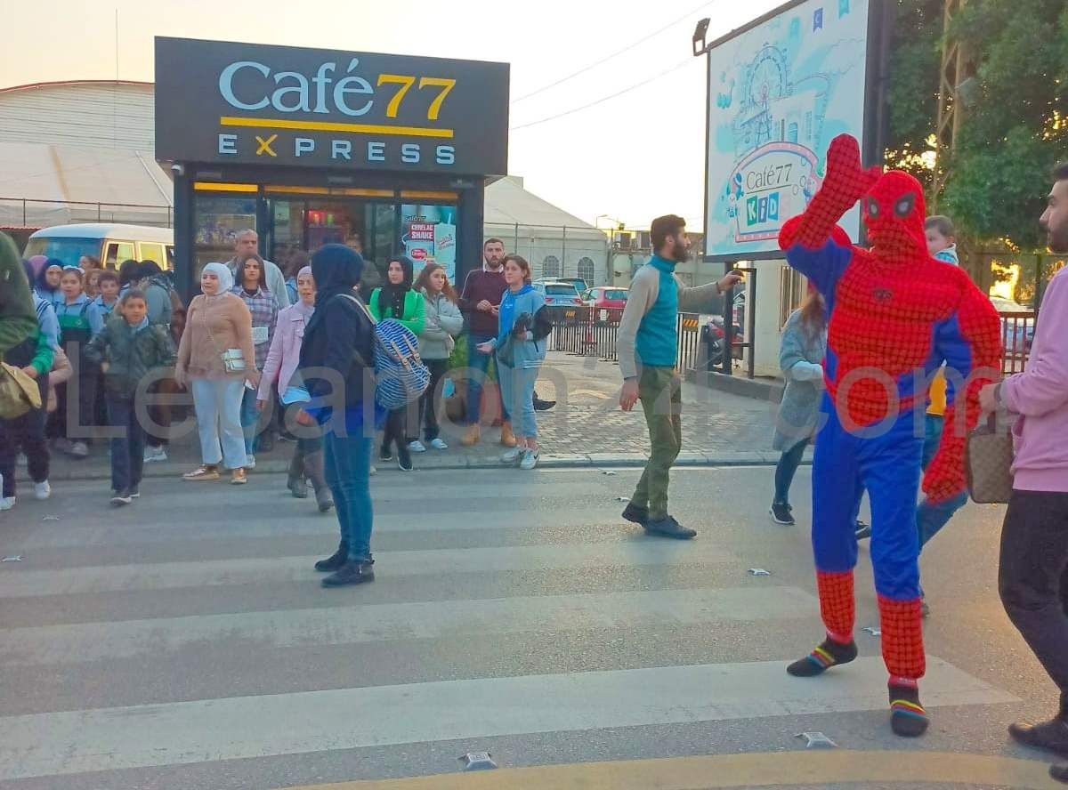وفي التفاصيل، فإنّ "سبايدر مان" الموجود في الصورة، ظهر في محيط أوتوستراد الأسد، وتحديداً قرب سلسلة من المطاعم والمحلات التجارية، وقد تولى تنظيم حركة السير وسط إقامة نشاطات ترفيهية للأطفال هناك في ظلّ العيد.