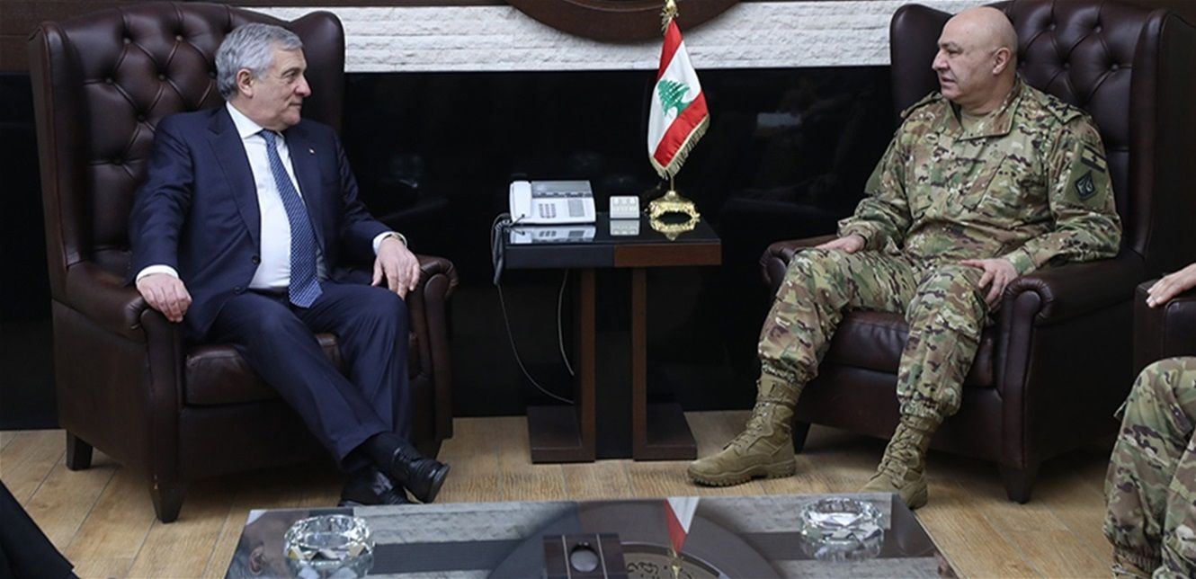 استقبل قائد الجيش العماد جوزاف عون وزير الخارجية الإيطالي Antonio TAJANI بحضور السفيرة الإيطالية في لبنان السيدة Nicoletta BOMBARDIERE والملحق العسكري الإيطالي العقيد Marco ZONA، وتناول البحث سبل دعم الجيش اللبناني في ظل الظروف الصعبة التي تشهدها البلاد