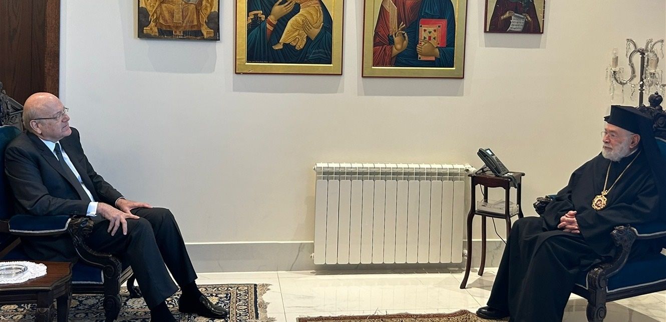 زار رئيس الحكومة نجيب ميقاتي مطرانية بيروت للروم الارثوذكس حيث التقى المتروبوليت الياس عودة.
