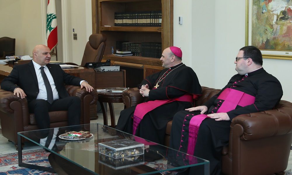 بحث رئيس الجمهورية العماد جوزاف عون، مع السفير البابوي المونسنيور باولو بورجيا، في العلاقات اللبنانية مع الكرسي الرسولي في ضوء الزيارة الأخيرة التي قام بها رئيس الجمهورية إلى الفاتيكان ولقائه البابا لاوون الرابع عشر وأمين سر دولة الفاتيكان الكاردينال بيترو بارولين.