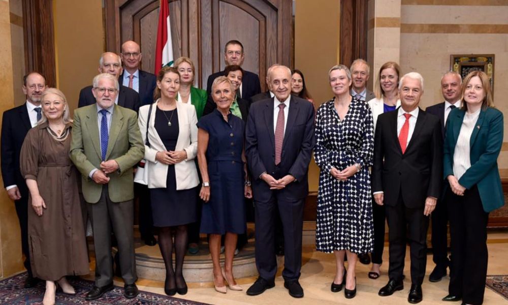 استقبل رئيس مجلس النواب نبيه بري في مقر الرئاسة الثانية في عين التينة سفراء دول الإتحاد الأوروبي بحضور سفيرة الإتحاد الأوروبي لدى لبنان ساندرا دو وال والمستشار الإعلامي لرئيس المجلس علي حمدان، حيث تناول اللقاء تطورات الأوضاع في لبنان والمنطقة والمستجدات السياسية والميدانية في ضوء عدم إلتزام إسرائيل بالقرار الاممي 1701 وقرار وقف إطلاق النار وإنتهاكاتها اليومية للسيادة اللبنانية، إضافة للعلاقات الثنائية بين لبنان والإتحاد الاوروبي.