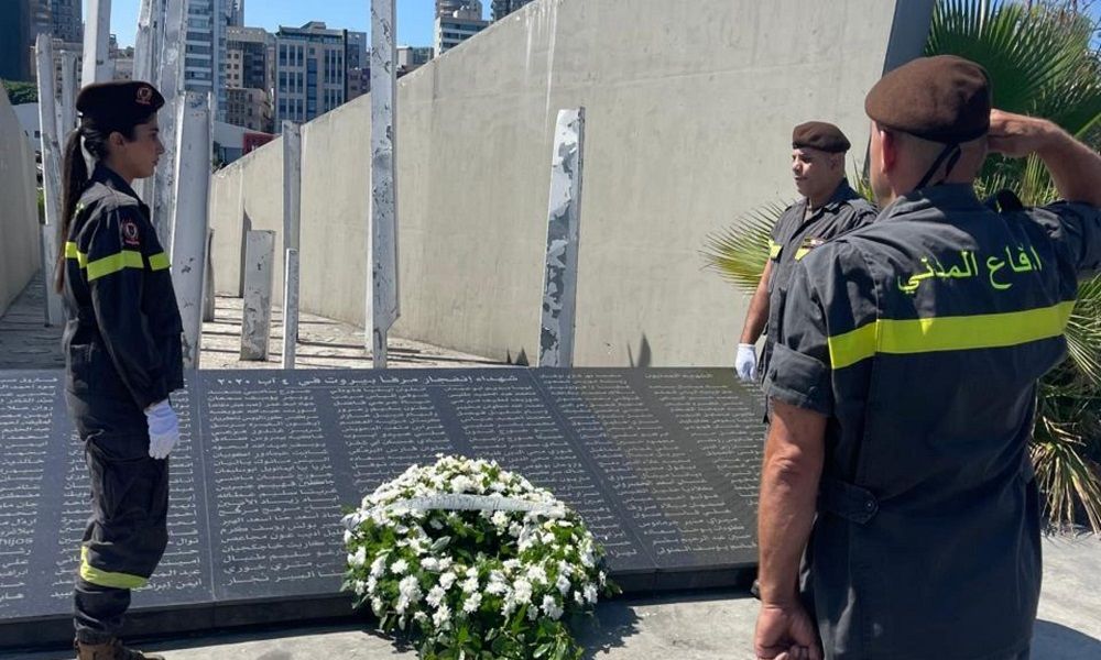 وضع عناصر من الدفاع المدني إكليلًا من الزهر على ضريح شهداء مرفأ بيروت في الذكرى الخامسة للفاجعة، وذلك وفاءً لتضحياتهم الخالدة وتحيةً لروحهم.