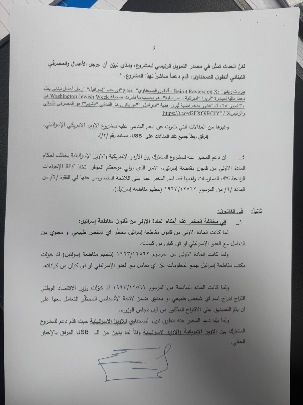 والجدير ذكره ان الدعوى مسجلة بتاريخ ٢٥-١١-٢٠٢٥، اي قبل المقابلة التي اجرتها منصة “This Is Beirut” مع السفير الإسرائيلي في واشنطن يحيئيل لايتر.