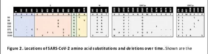 وثق باحثون في جنوب إفريقيا حالة امرأة مصابة بفيروس نقص المناعة البشرية (HIV)، وأصيبت منذ تسعة أشهر بـ COVID-19. واكتشف الباحثون أن الفيروس لم يغادرها واستطاع التحور داخلها لأكثر من ثلاثين تغييرًا جينيًا.