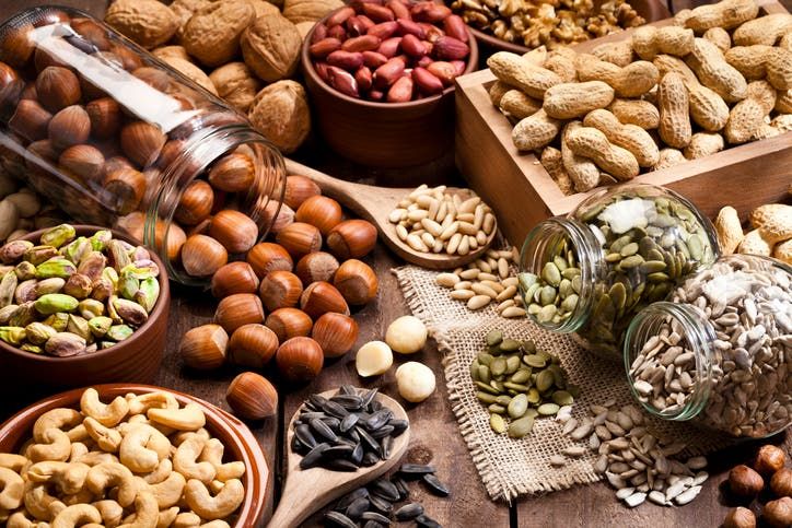 ومن الأغذية التي التي تحتوي على التربتوفان، بذور اليقطين وبذور عباد الشمس والفول السوداني إذ تعتبر مصادر نباتية لهذه المادة الكيميائية.
