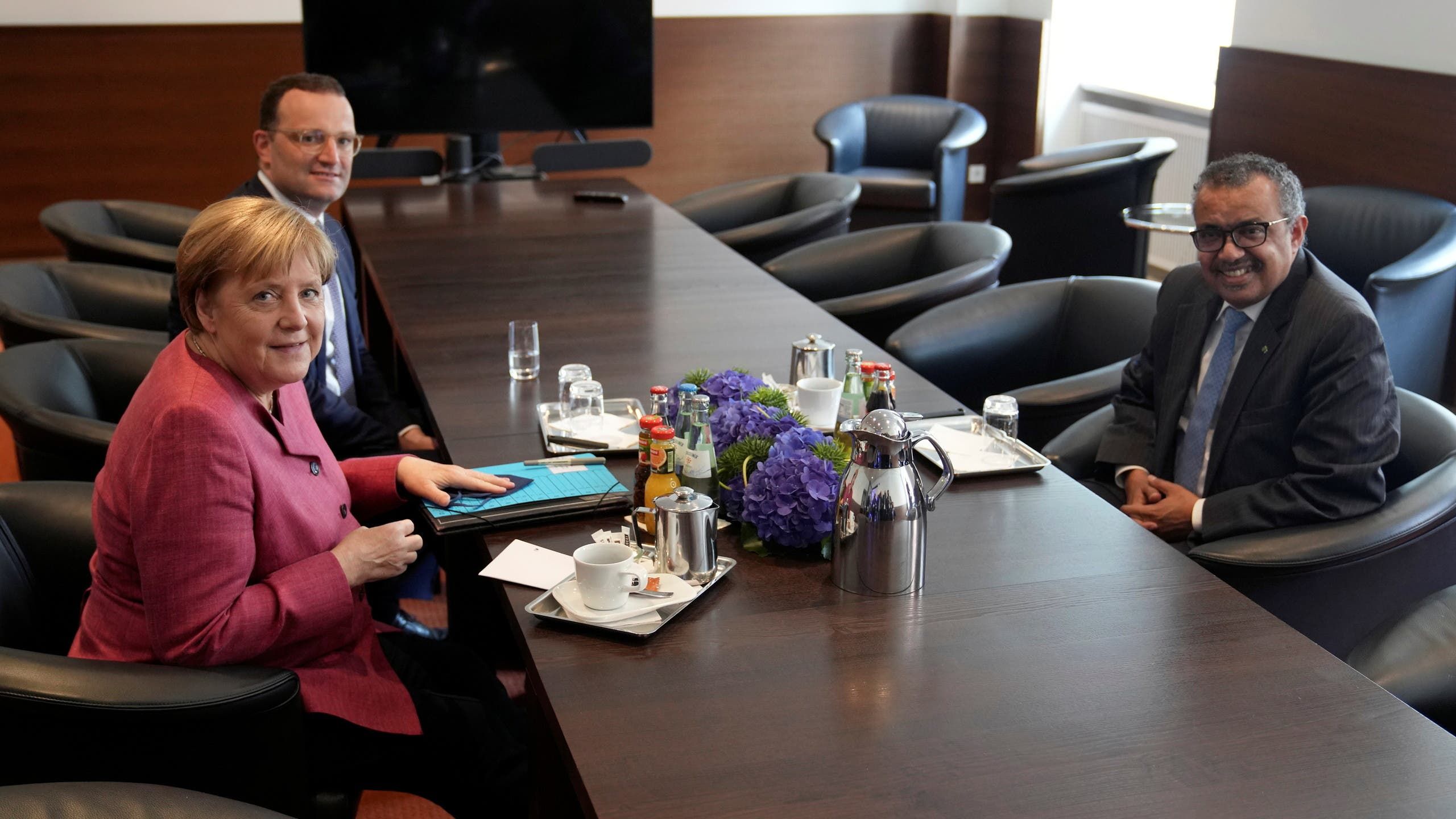 مباحثات بين أنغيلا ميركل وتيدروس أدهانوم غيبريسوس