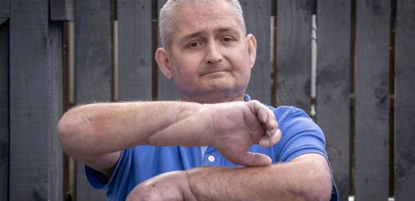 ووفقا لصحيفة "مترو" البريطانية، فإنه تم تشخيص حالة المريض ستيفن غالاغر بمرض تصلب الجلد، وهو مرض مناعي ذاتي نادر، يسبب تندبًا في الجلد والأعضاء الداخلية، بعد أن أصيب بطفح جلدي غير عادي منذ حوالي 13 عامًا.
