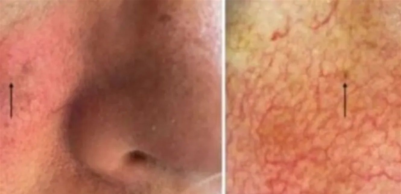 البقعة الصغيرة غير مرئية للعين البشرية تقريبا، وهي ورم ميلانيني، النوع الأكثر فتكا من سرطان الجلد.