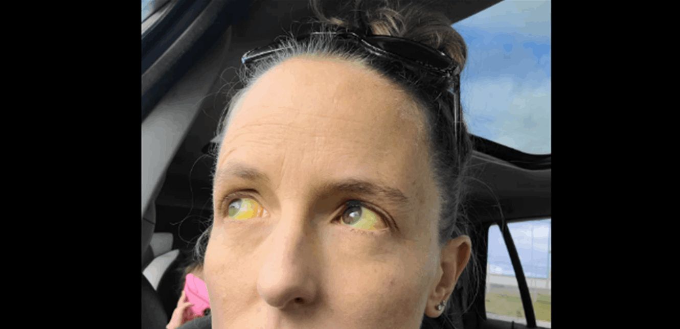 ومع ذلك، بعد ستة أسابيع من تناول المكمل، بدأت الأم تعاني من آلام في المعدة، والتي سرعان ما تفاقمت. ولاحظت بعد ذلك أن بشرتها وعينيها "تبدو صفراء قليلاً".