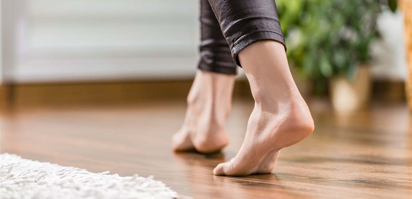 كما أن الأسطح الصلبة، مثل: البلاط، والخشب، لا توفر توسيدًا للقدم؛ ما قد يؤدي إلى الشعور بالإجهاد أو تطور حالات، مثل: التهاب اللفافة الأخمصية، وهو ألم في الكعب ناتج عن التهاب الأنسجة.