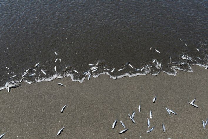 ووفق صور نشرتها وكالة “رويترز” للأنباء اليوم الاثنين، فإن ما يقرب من 200 طن من الأسماك النافقة ظهرت على شواطئ ” أراوكو” في تشيلي، ويرجح الخبراء سبب النفوق إلى التغيرات المناخية التي تشهدها الكرة الأرضية.