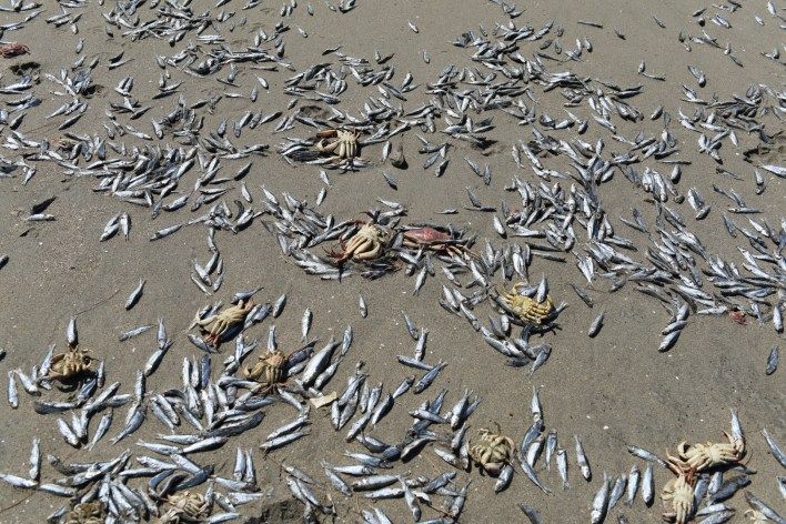 تفاجأ المواطنون في تشيلي بنفوق مئات الأطنان من الأسماك على شواطئ “بلايا أراوكو”، حيث جرفت المياه أنواعا من الأسماك المختلفة على الشواطئ، في حادث لم تفسر السلطات سببه حتى الآن.