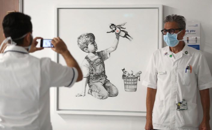 بيعت لوحة للفنان “بانكسي” Banksy تكرم العاملين بالصحة NHS في بريطانيا خلال الجائحة بمبلغ 16.8 مليون جنيه إسترليني، ما يعادل 23 مليون دولار، حسبما أعلنت دار مزادات “كريستيز” Christie’s ، الثلاثاء.