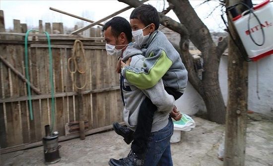 يحمل أب تركي في ولاية ملاطية شرقي البلاد ابنه من ذوي الإعاقة إلى المدرسة كل صباح على الرغم من سوء الأحوال الجوية وسوء حالة الطرق.