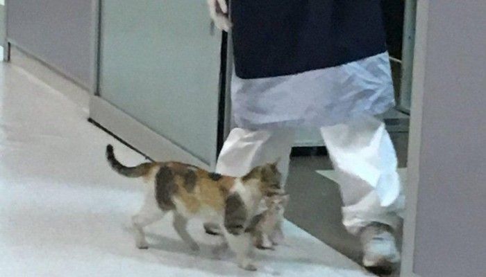 وتقول إحدى العاملات في المستشفى: “عندما بدأنا في استقبال المرضى في الصباح، ظهرت القطة تحمل صغيرها، كانت تطلب المساعدة، وظلت تموء لفترة طويلة، لقد صدمنا”.