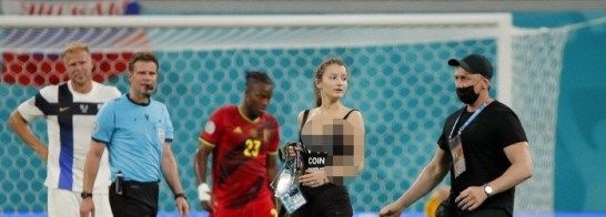 اقتحمت فتاة لملعب غازبروم بسان بطرسبورغ الروسية، أثناء مباراة منتخب بلجيكا أمام منتخب فنلندا في نهائيات أمم أوروبا 2020؛ حيث كانت تلبس قميصا يشير لعملة رقمية مشفرة.واقتربت الفتاة من منتصف الملعب قبل أن تتدخل قوات الأمن الروسية لإمساكها وإخراجها من الملعب، ولم يؤثر ذلك على المباراة التي انتهت بفوز بلجيكا 2-0 وتصدرها بالعلامة الكاملة فيما أنهى منتخب فنلندا في المركز الثالث وينتظر نتائج باقي المجموعات.