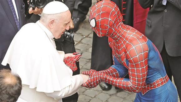 وكاد وجوده في ساحة الفاتيكان يسرق الأضواء من البابا، كما التقط البطل الخارق الذي يحظى بشعبية كبيرة لدى الأطفال، صور «سيلفي» مع عدد من البالغين.