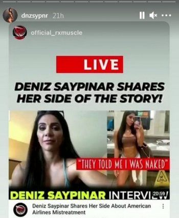 منعت لاعبة كمال الأجسام التركية، دنيز سايبينار من ركوب طائرة تابعة لشركة الخطوط الجوية الأميركية بحجة أن ملابسها فاضحة وأنها شبه عارية.