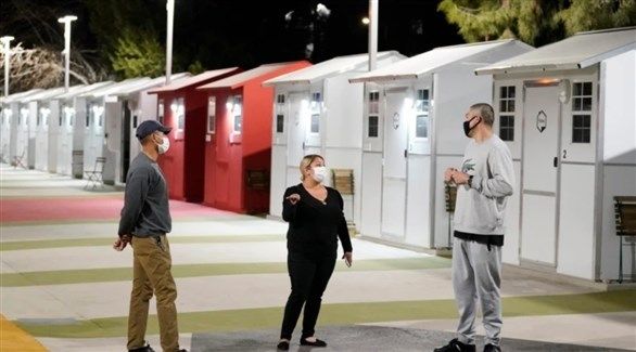 في موقف في لوس أنجليس، تصطف مجموعة من المنازل الصغيرة جدّاً والمجهّزة مسبقاً بغرض إيواء المشردين وتأمين سقف مؤقت لهم قبل انتقالهم إلى مساكن دائمة.