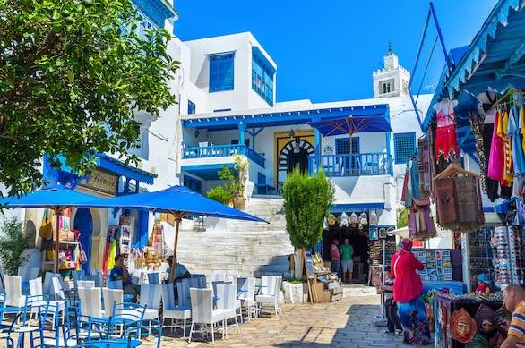 تقع هذه المدينة المتواضعة بالقرب من تونس العاصمة، وتتميز باللون الأزرق والأبيض. تتباهى المدينة بمداخلها الدمشقية، وأبنيتها الجرئية التي تكتسي باللون الأزرق مع لمسات متقطعة من اللون الأبيض. غالبًا ما تكون الأبواب والنوافذ ملونة أيضًا باللون الأزرق.