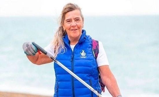 استمرت سارت ليزبيت، البالغة من العمر 57 عاماً، والتي ربحت مليون جنيه استرليني في عام 2019، على نفس المسار الذي سلكته منذ خمسة عقود بتنظيف الشاطئ من النفايات البلاستيكية.