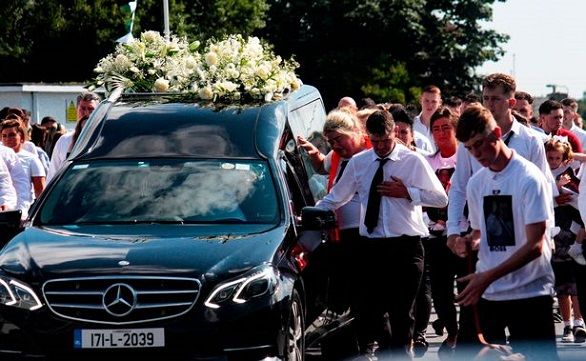 ويوم الثلاثاء، شاركت العروس الحزينة، وهي من توماسجيت في ليمريك، وعائلتها وأحبائهما في مراسم الجنازة في كنيسة سانت ماري، أسكيتون، وظهرت كيت حزينة، محاطة بوالديها، وهي ترتدي فستان زفافها، وتمسك باقة أزهار خارج لامنزل مع صورة لمايلز خلفها، وكانت قد تعهدت في أحد مواقع التواصل الاجتماعي بأنهما الآن زوج وزوجة.