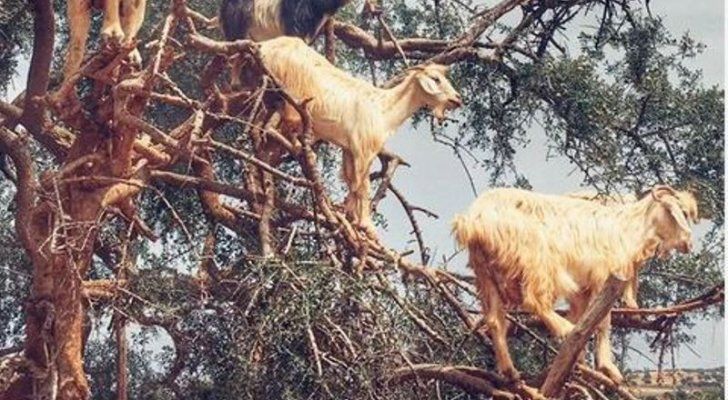 تشاهد أسراب العصافير أو طيور الحمام عادة واقفة على أغصان الشجر، خصوصا في أوقات الصباح، أو عند غروب الشمس استعدادا لدخول أعشاشها قبل النوم، لكن أن نشاهد قطيعا كاملا من الماعز على أغصان الشجر فهو حدث نادر وعجيب أيضا.