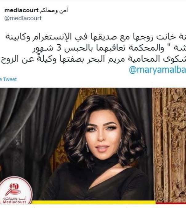 وشمل حكم السجن صديق المواطنة لذات المدة، وذلك عقب مرافعة المحامية مريم البحر كوكيلة عن الزوج، والتي سبق وأن ترافعت بقضايا مشابهة.