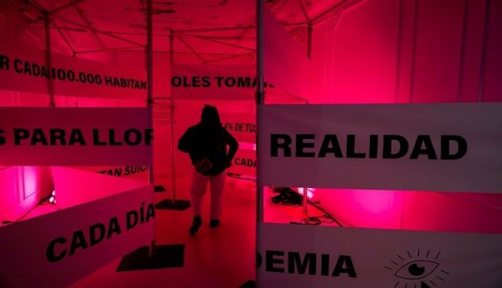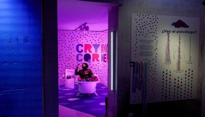 تدعو لافتة معلقة على غرفة في إسبانيا من يدخلها لإطلاق العنان لدموعه إذ كتب عليها “ادخل وابك” في حين كُتب على أخرى “أنا أيضا أعاني من القلق”.