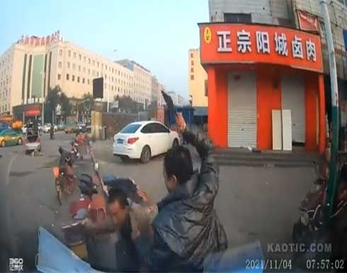 أظهر مقطع متداول قيام رجل في أحد شوارع مقاطعة شانشي الصينية بالتعدي على المارة بشكل عشوائي بسكين كبيرة، قبل أن يصدمه سائق سيار ويوقعه أرضًا مما أدى إلى إنقاذ العديد من الأرواح في مكان الحادث.