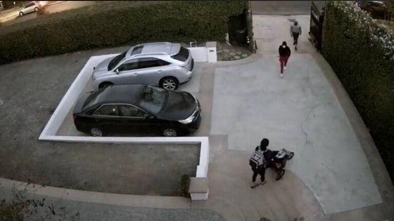 ووفقا لإدارة شرطة لوس أنجلوس، التي نشري فيديو عملية السرقة عبر “تويتر”، فقد قام رجلان في العشرينات من العمر بملاحقة الضحية إلى منزلها في منطقة هانكوك بارك بعد فترة وجيزة من عودتها من نزهة مع طفلها الرضيع.
