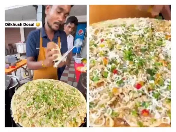 تم نشر مقطع فيديو على يوتيوب يظهر فيه بائع وهو ينشر عجينة الدوسة ثم يضيف الزبدة إليها. بعد ذلك يتم إضافة البصل المفروم والفليفلة والملفوف وصلصة جوز الهند. بعد ذلك يضيف البانير المبشور والكاجو والزبيب والغارام ماسالا، ثم يخلطها جميعًا ويغطي النصف الآخر من العجينة ويزينها بأوراق الكزبرة والكرز والجبن المبشور.